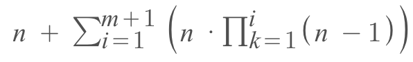 n + sum( (n * math.prod(n — 1 for k in range(1,i+1) ) ) for i in range(1,m + 2 ))