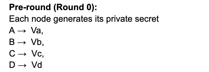 - Pre-round (Round 0): Every person / node creates a personal secret.